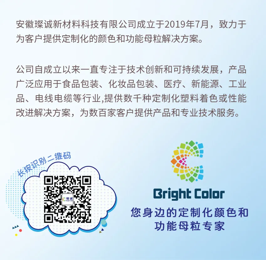 如果您需要更多其他特殊性能的功能母粒,璨诚新材料还可根据具体需求提供定制化解决方案,欢迎您与我们联系交流!