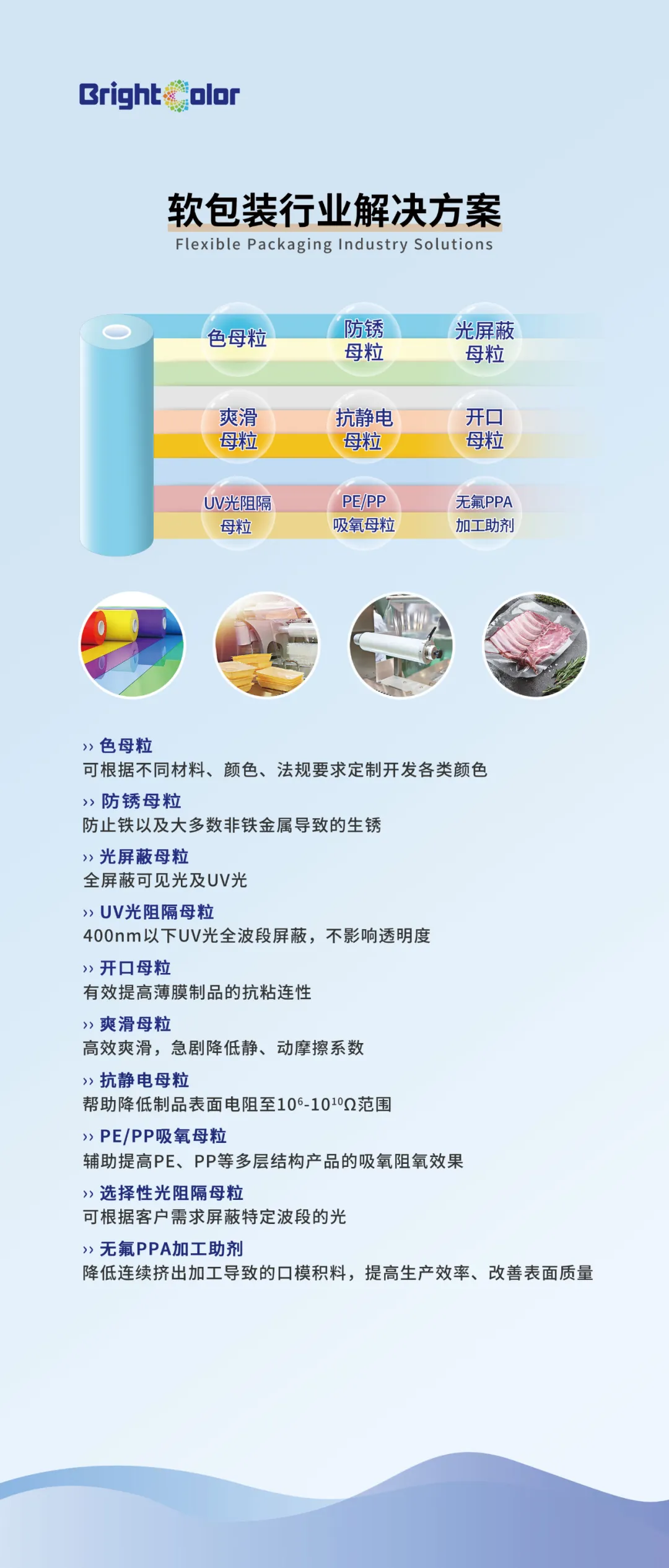 本次参展,针对包装行业,璨诚展出多种颜色及功能助剂解决方案,满足客户多元化的需求。详情请看下图,上下滑动查看更多内容: